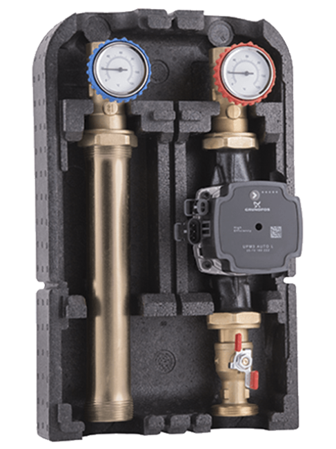 В комплекте: Насос Grundfos UPM3 AUTO L25-70, термометры, термоизоляция, шаровые краны, обратные клапаны.