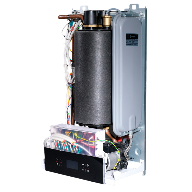 Устройство поставляется в полной заводской конфигурации «все-в-одном»: в надежном корпусе уже интегрированы высокопроизводительный циркуляционный насос и расширительный мембранный бак на 6 литров, что исключает необходимость отдельной покупки и сложной сборки узлов. Сдержанный дизайн с матовыми панелями и четкий LCD-дисплей обеспечивают удобный контроль и визуальную интеграцию в любое техническое помещение.