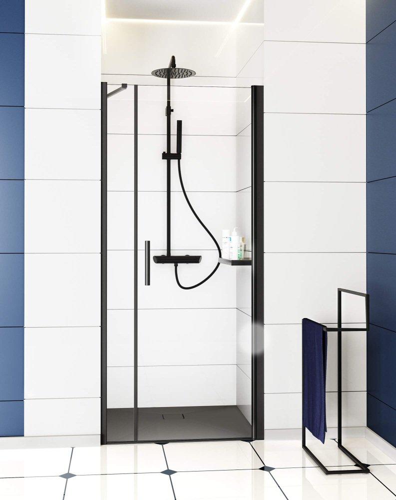 Двери для ниши распашные Deante Moon Nero, стекло прозрачное, черный профиль, 20+70х200см