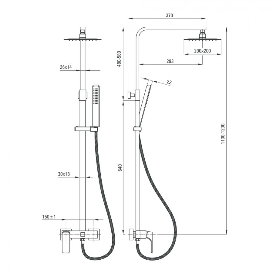 Штанга с регулируемой высотой (мм) | 1100 - 1200 |