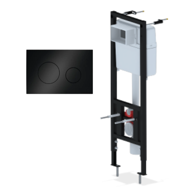 Полная готовность к монтажу: Комплект включает всё необходимое: прочную стальную раму с регулировками, сливной бачок и стильную матово-черную кнопку. Вам не нужно подбирать аксессуары отдельно, что экономит время и гарантирует совместимость.