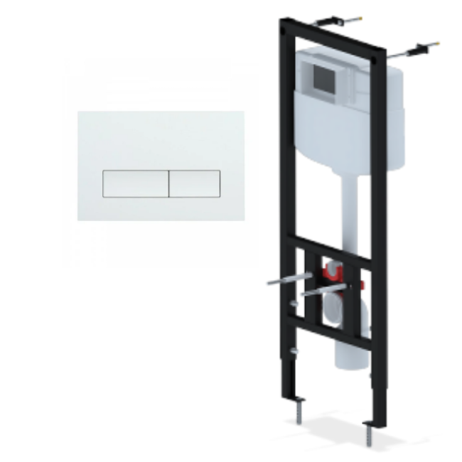 Полная комплектация для сложного монтажа: Комплект включает всё необходимое для установки: усиленную стальную раму с регулировками по высоте и глубине, сливной бачок, арматуру и белую глянцевую кнопку. Это гарантирует совместимость всех компонентов и экономит ваше время.