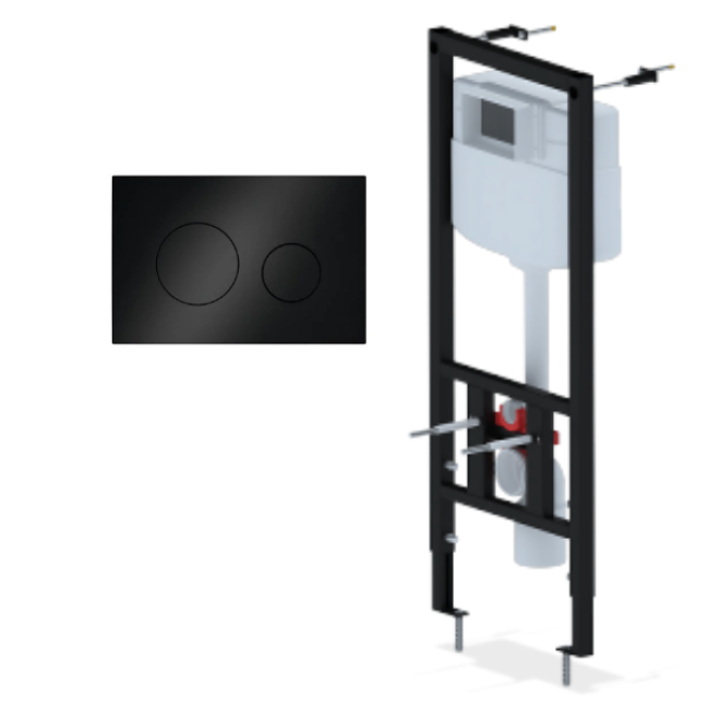 Полная готовность к установке: Комплект включает все необходимое для монтажа: усиленную стальную раму с регулировками по высоте и глубине, сливной бачок, арматуру и стильную матово-черную кнопку. Это избавляет от поиска совместимых компонентов и экономит время.