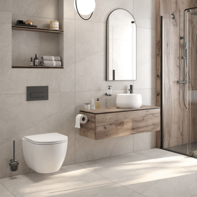 Ультратонкий дизайн: Толщина всего 5.5 мм обеспечивает минимальное выступание над плиткой, создавая визуально ровную поверхность и подчеркивая геометрическую строгость линий.