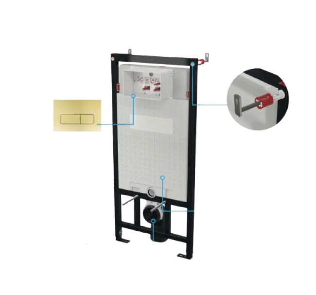 Инсталляция Deante CST_X50R с кнопкой цвета брашированное золото — это элитное решение для создания эксклюзивного интерьера ванной комнаты. Модель польского производства сочетает в себе безупречное качество и роскошный дизайн. Прямоугольная кнопка слива в благородном золотом исполнении станет изысканным акцентом, подчеркивающим ваш безупречный вкус и внимание к деталям.