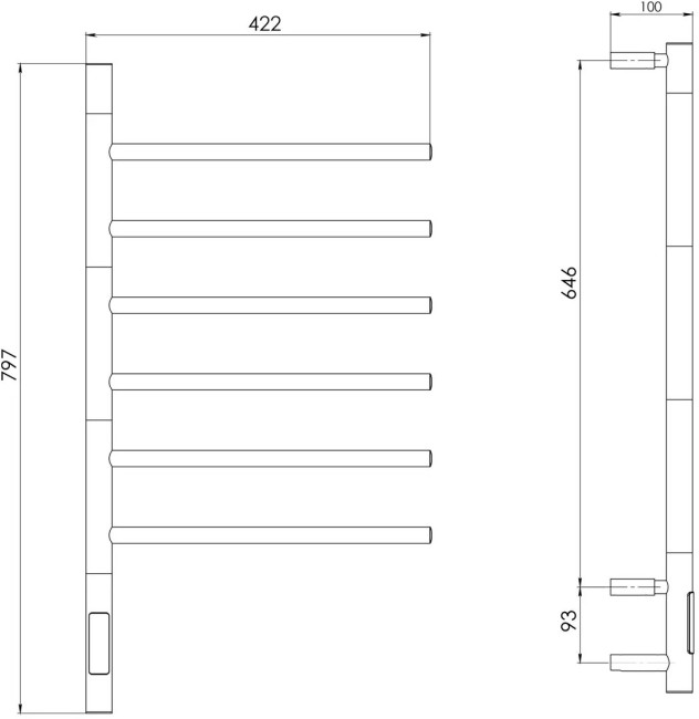 Электрический полотенцесушитель Gloss&Reiter Ti#1 в стильном матово-черном исполнении представляет собой современное решение для ванных комнат средних размеров. Модель высотой 80 см с шестью перекладинами сочетает в себе лаконичный дизайн и расширенные функциональные возможности. Глубокий черный цвет создает выразительный акцент в интерьере, подчеркивая индивидуальность и чувство стиля, а оптимальные габариты делают прибор универсальным решением для большинства стандартных помещений.